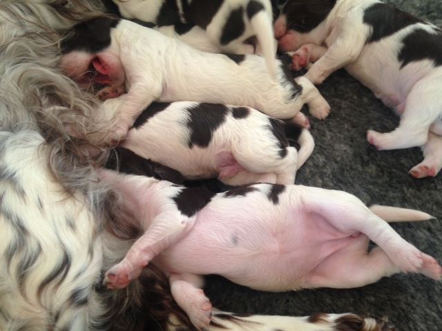 Vi tog lidt hyggelige stemningsbilleder af "Frida" og "Kenzo's" hvalpe - de er nu 3 uger gamle